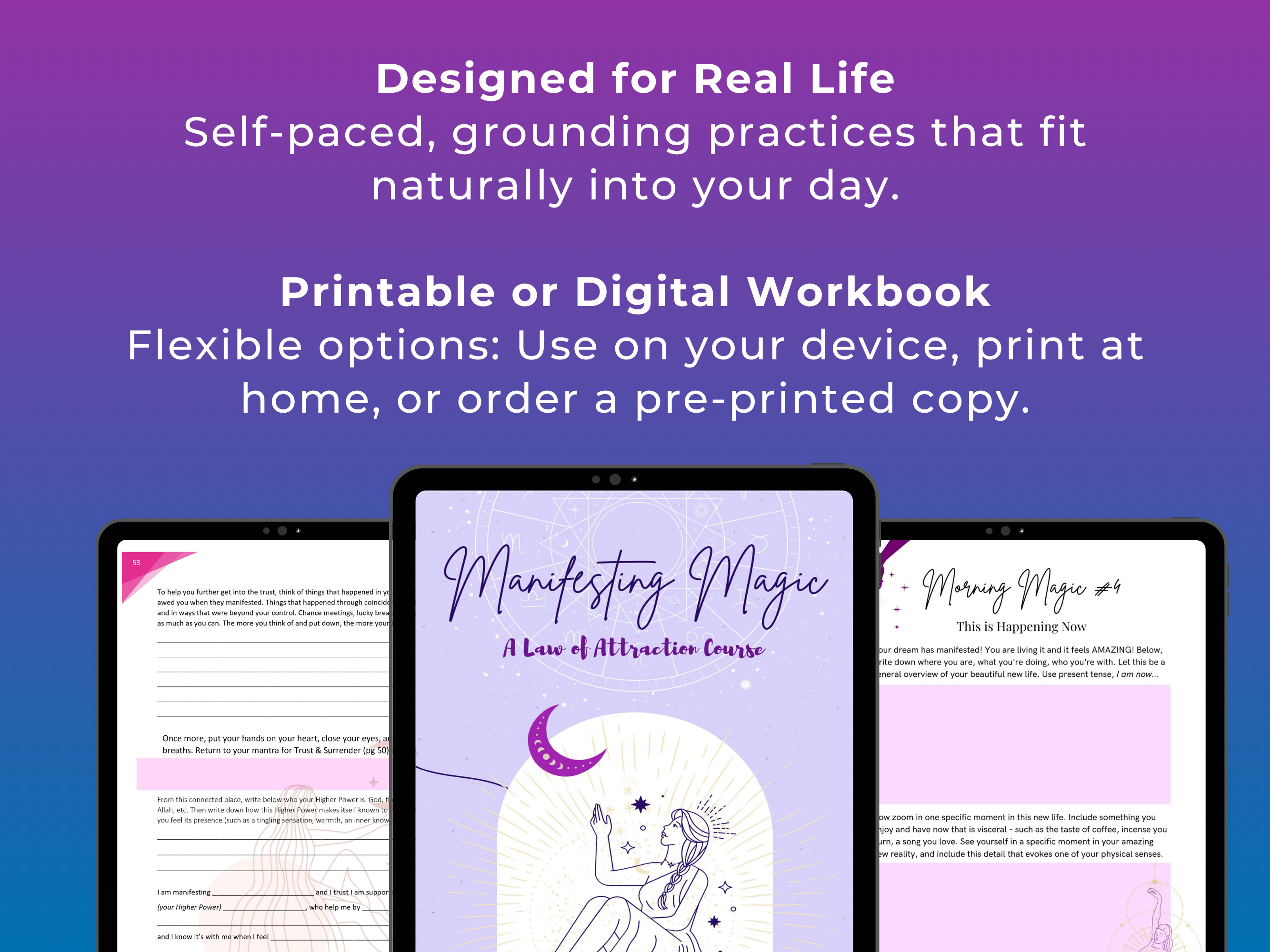 • A 72 page printable or digital workbook filled with reflective prompts and practices