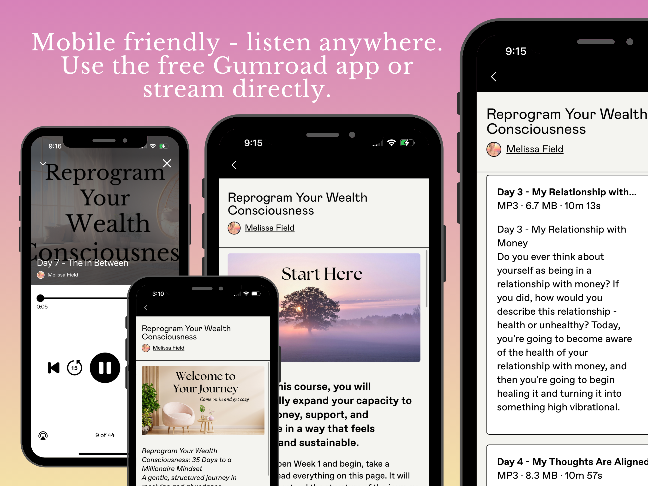 Listening daily is what creates lasting change. Repetition allows new thoughts to settle in and take root. This is how new neural pathways are formed and how your relationship with wealth evolves in a way that feels natural rather than forced.