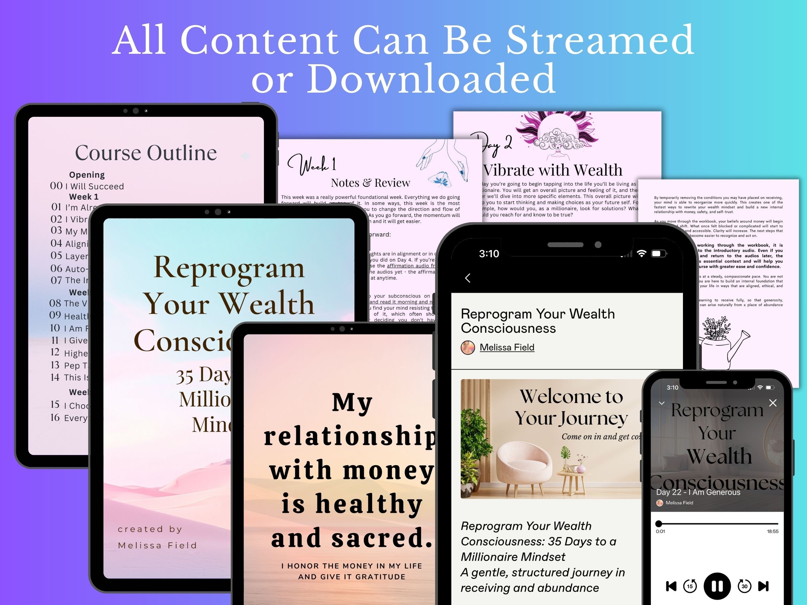 Each day gently shifts the beliefs you hold about money, safety, and possibility. Over time, the nervous system begins to relax and the mind opens. Many people notice that money starts to feel less charged and more neutral, accessible, and supportive.